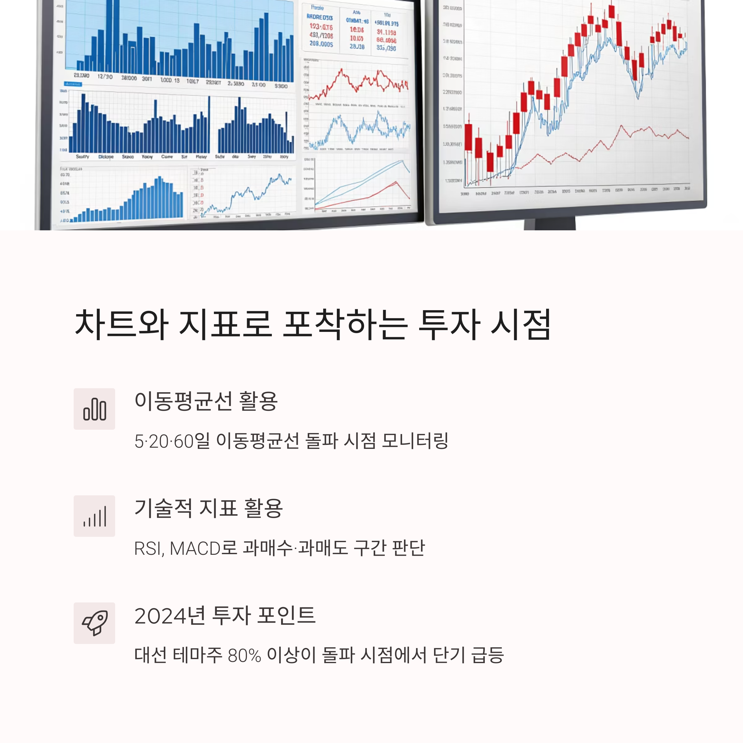 대선 테마주의 흐름은 뉴스와 차트 분석을 통해 한눈에 볼 수 있습니다. 뉴스 키워드 빈도 증가나 특정 공약이 반복적으로 언급되기 시작하면 관련 종목의 거래량과 시세가 먼저 반응합니다. 특히 정정 보도, 정책 변경, 지지율 변동 등이 발생하면 테마주의 흐름에도 강한 변동성이 나타납니다. 이를 파악하기 위해서는 단순 주가 흐름뿐 아니라 거래량, 이평선, 지지선 등 기술적 분석 지표도 함께 활용해야 합니다.