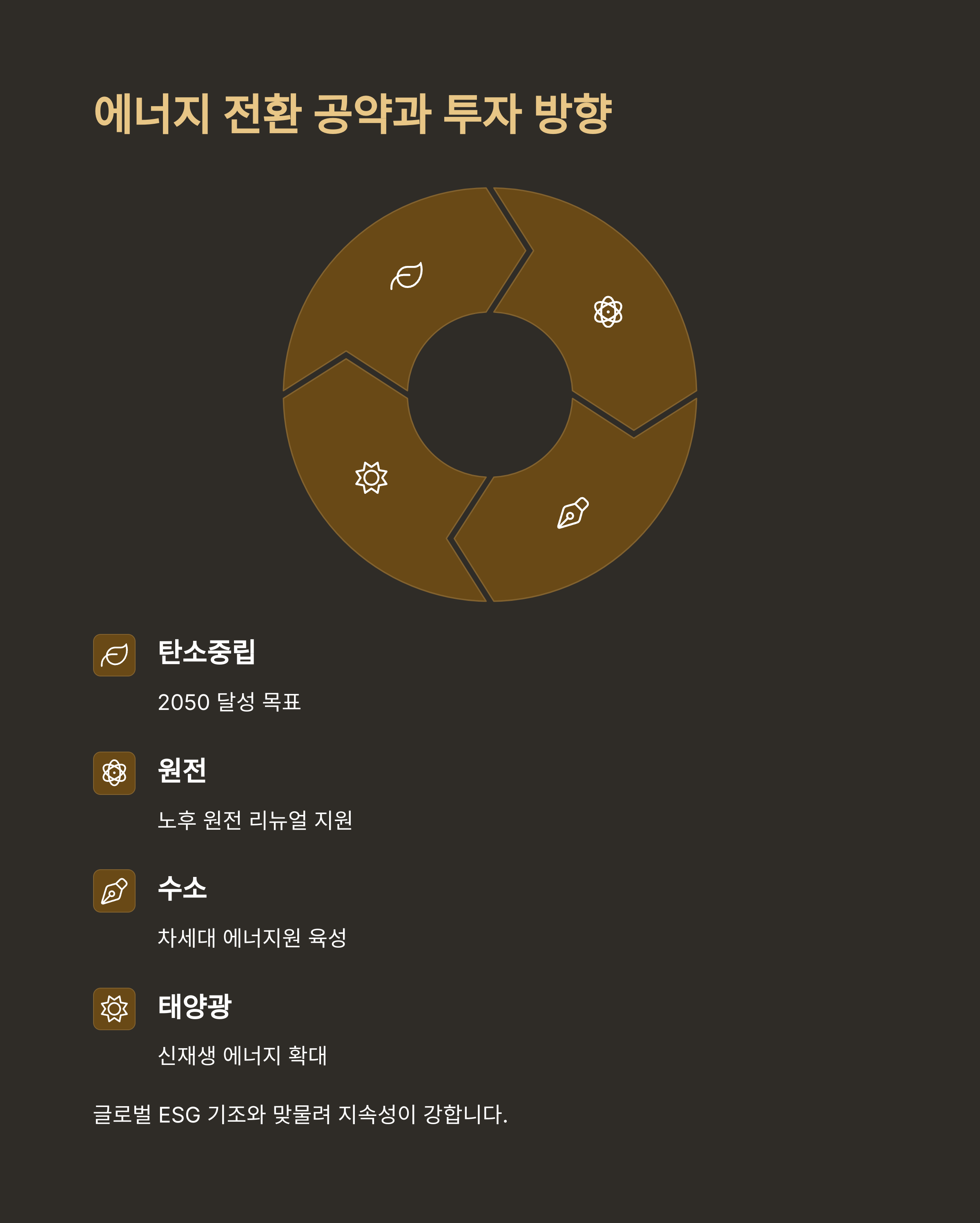 - 공약 예시: “탄소중립 2050 달성”, “노후 원전 리뉴얼 지원”