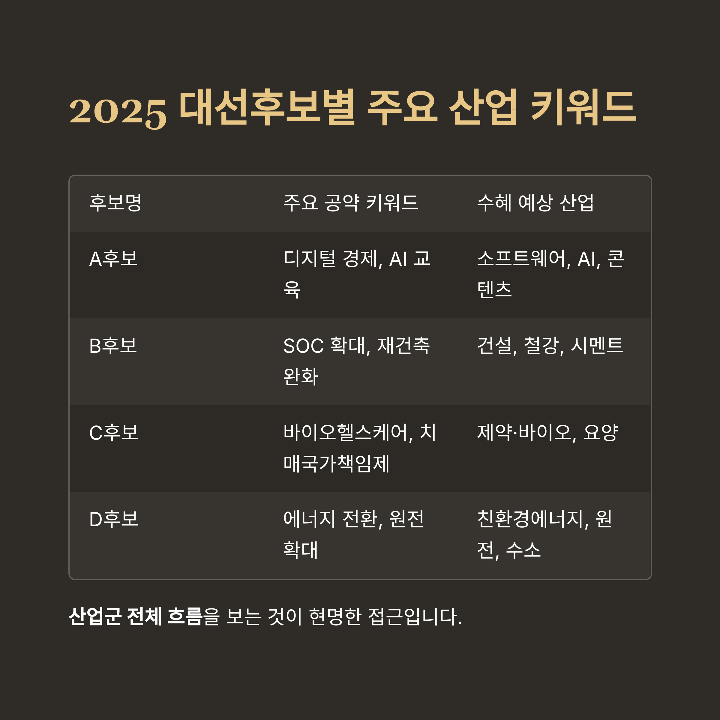 산업별 키워드 심층 분석 – 어떤 공약이 어떻게 시장에 영향 줄까?