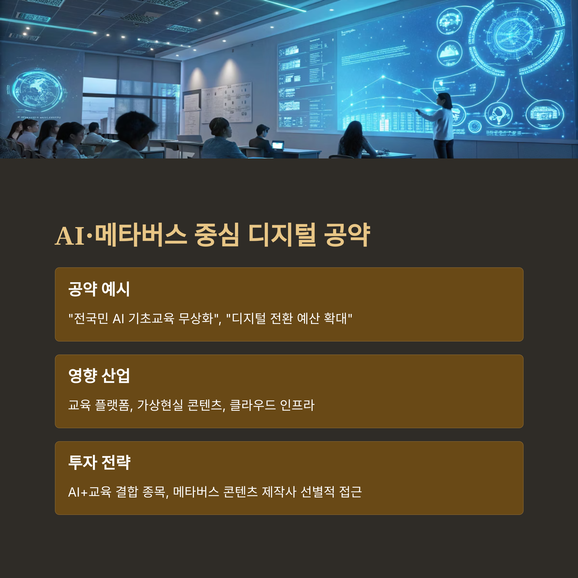 📌 전략: AI+교육 결합 종목, 메타버스 콘텐츠 제작사 선별적 접근
