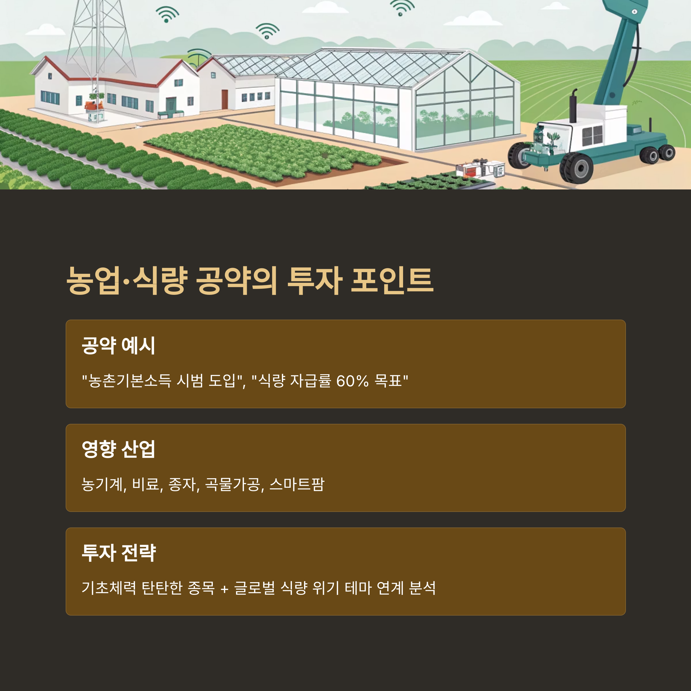 - 공약 예시: “농촌기본소득 시범 도입”, “식량 자급률 60% 목표”