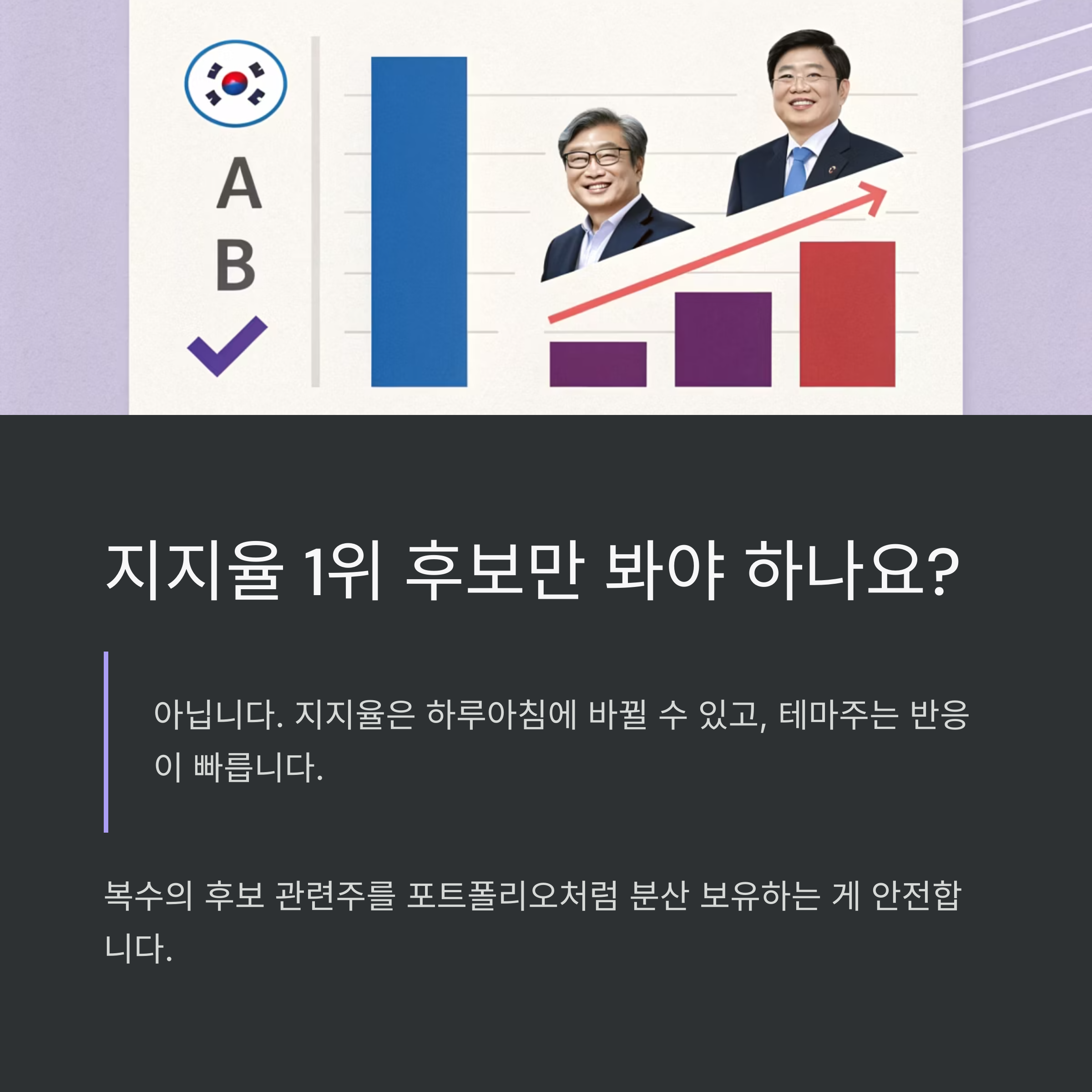 A. 아닙니다. 지지율은 하루아침에 바뀔 수 있고, 테마주는 반응이 빠릅니다.