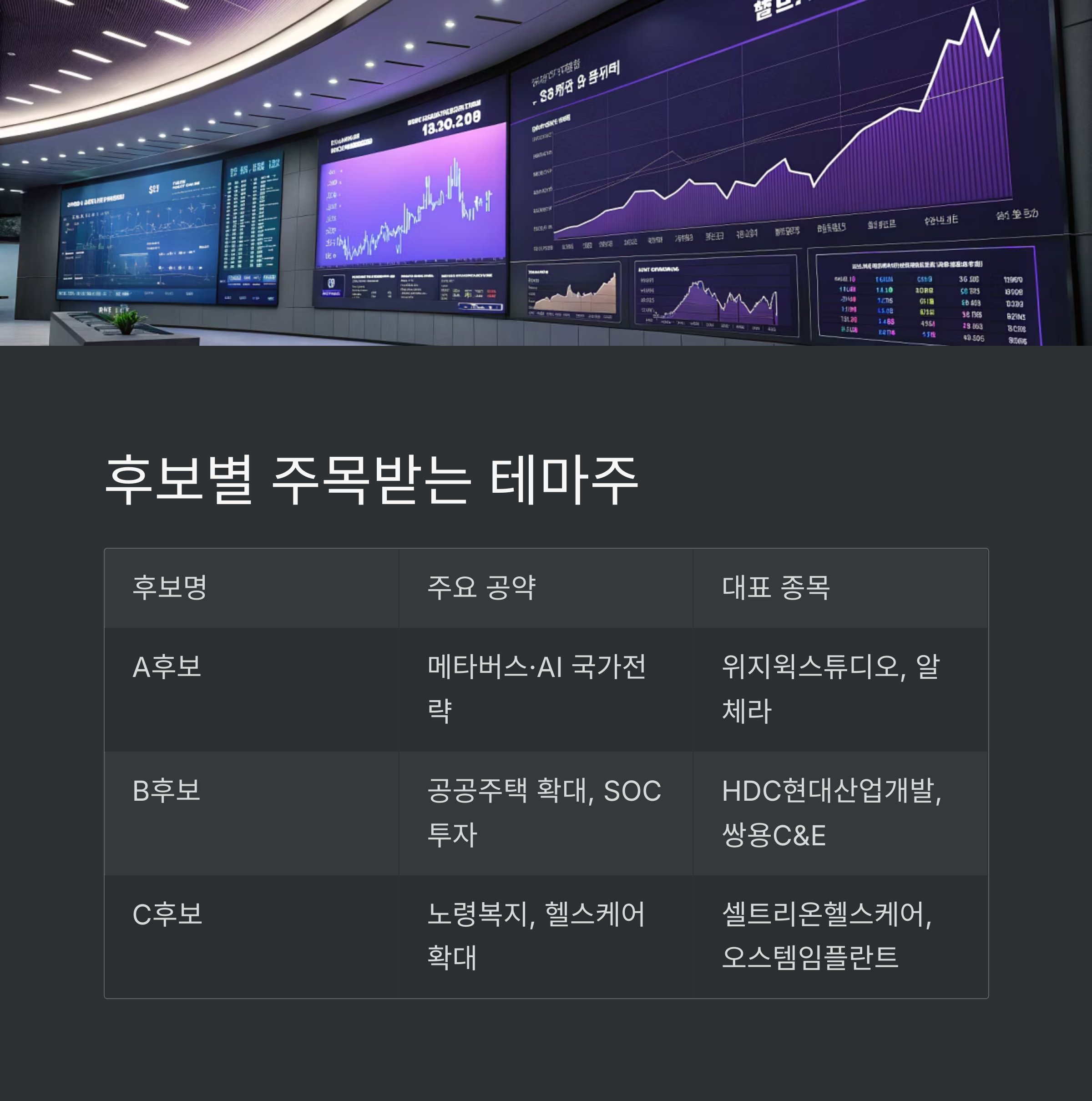 후보별 테마주 예시: 지금 시장에서 주목받는 종목