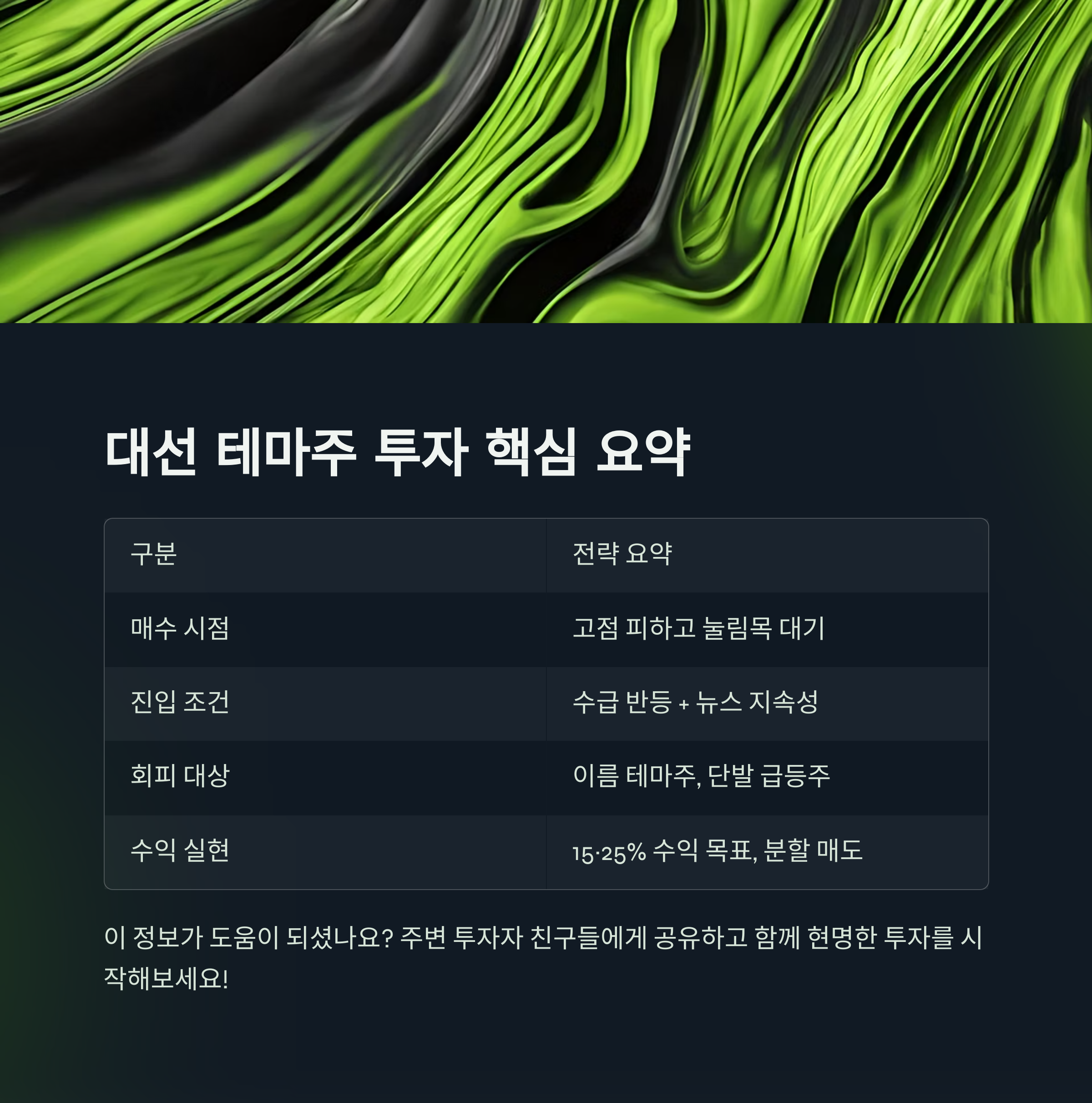 대선 테마주, 과연 지금이 기회일까 아니면 늦었을까?