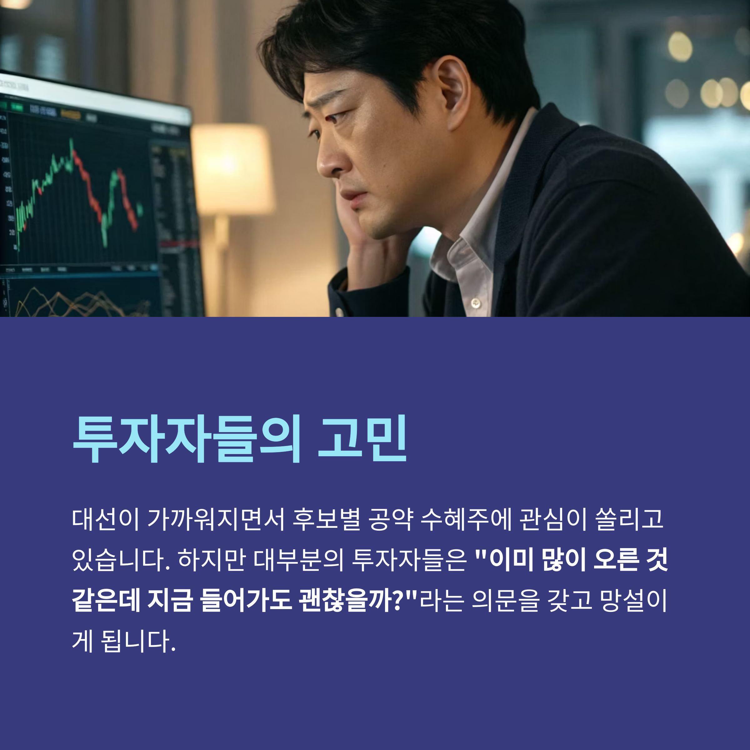 대선주, 수혜주투자, 테마주매매법, 후보지지율, 정책주진입, 주식리스크관리