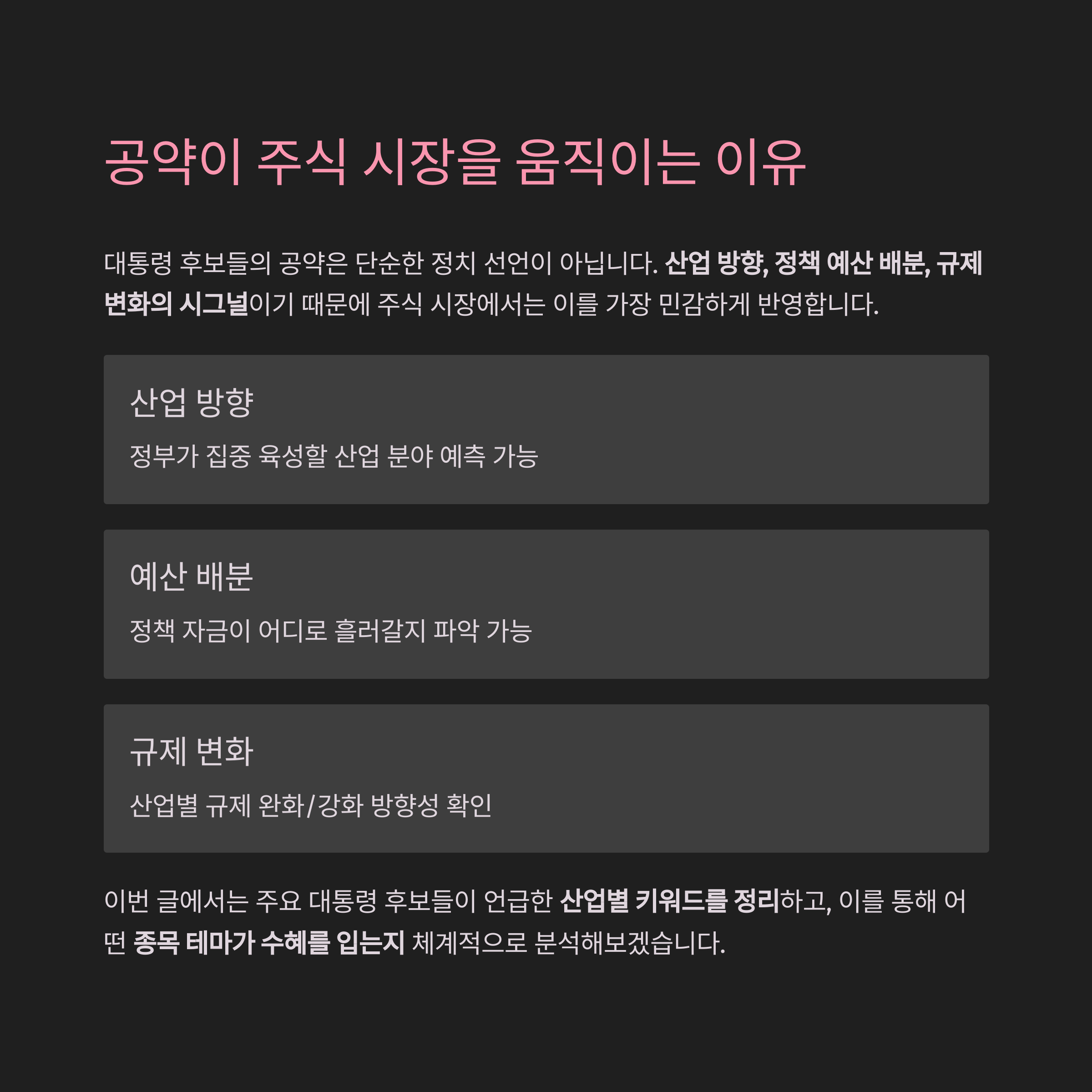 후보 공약 속 산업 키워드가 주식 시장을 움직인다