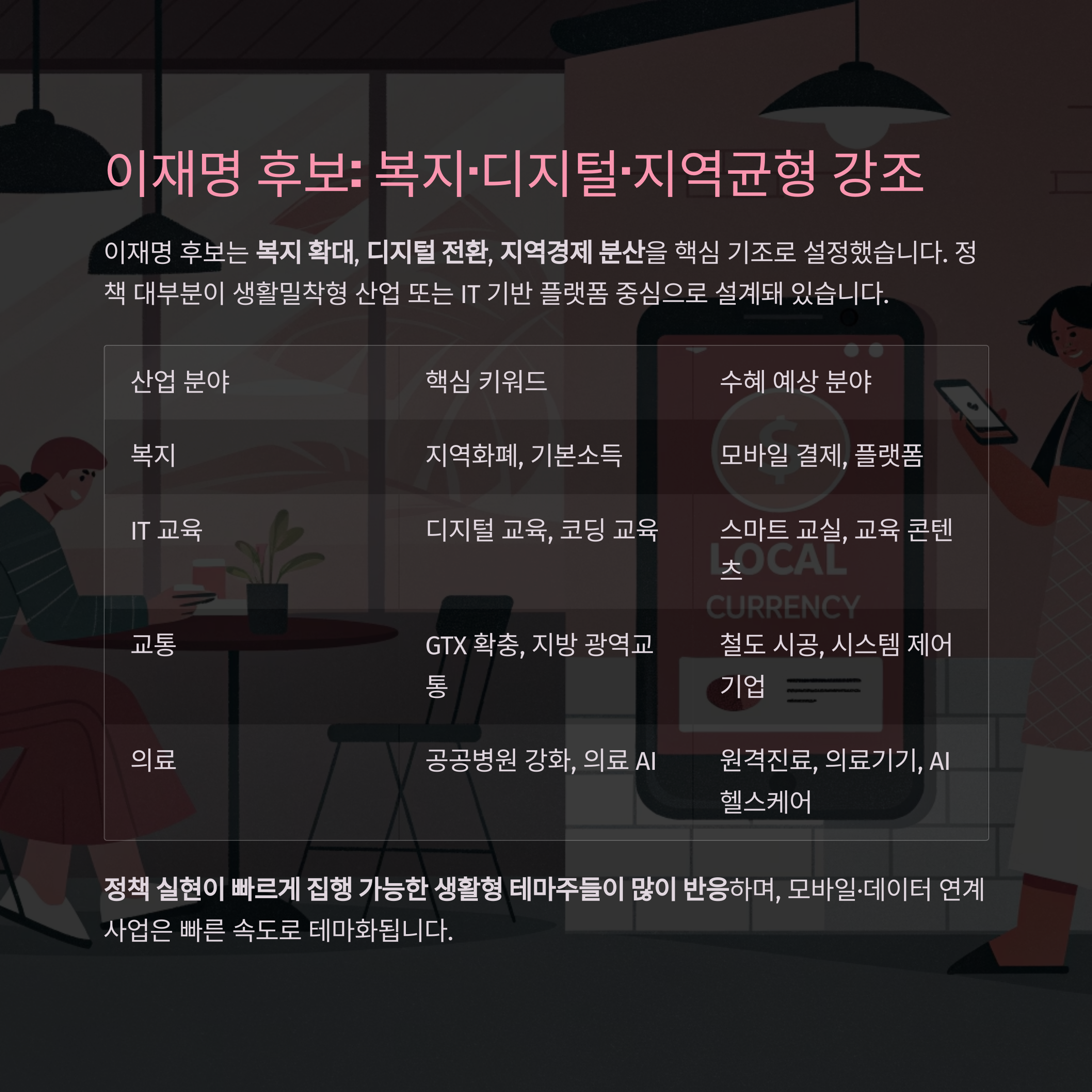 | 이재명 | 복지+디지털 | 지역화폐, 교육, 의료 | 생활형, 빠른 테마화 |