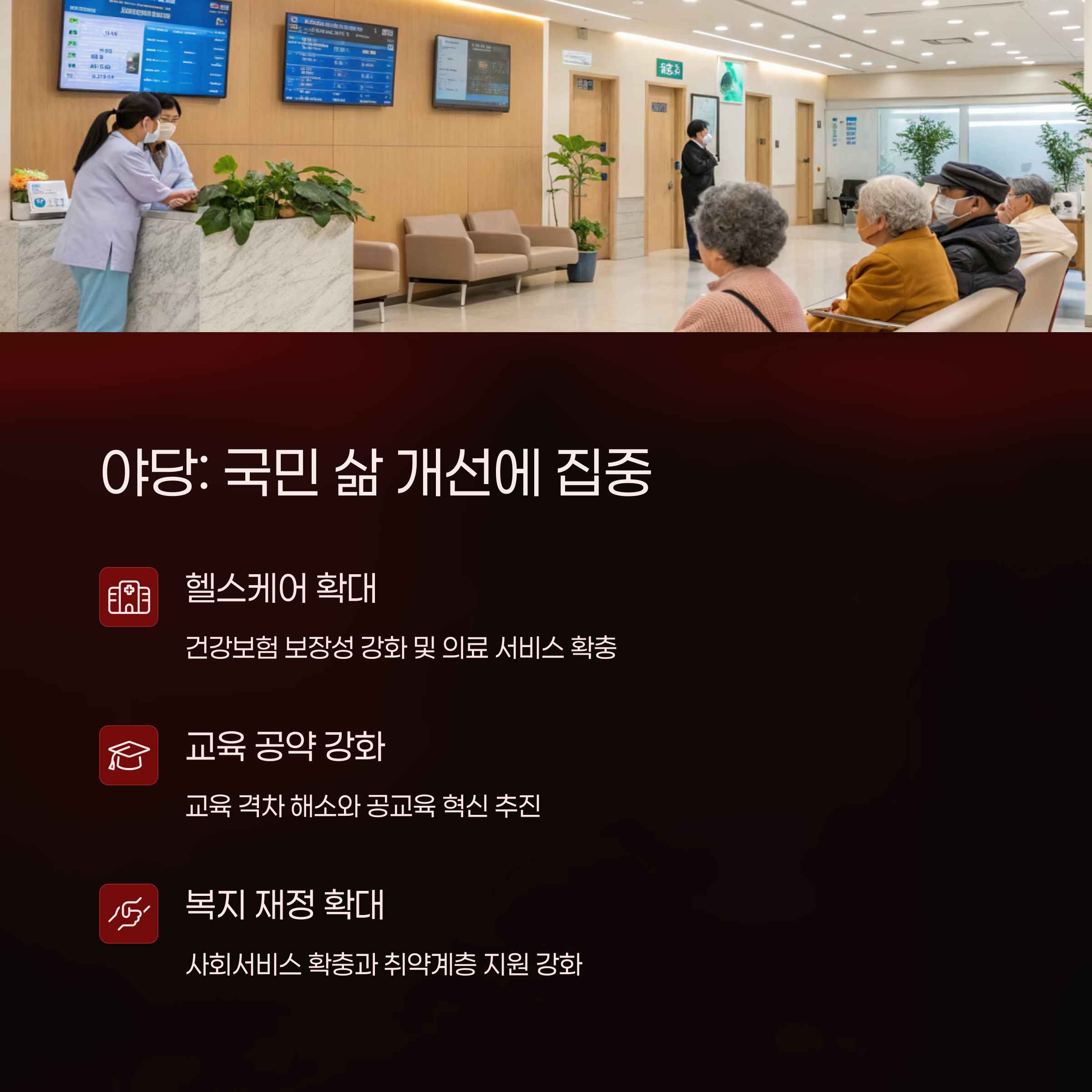 반면, 야당은 복지 강화와 국민 생활 안정에 초점을 맞춘 의료 서비스 확대, 교육 개편 등의 공약을 제시하고 있습니다. 이로 인해 헬스케어, 바이오, 교육 플랫폼 관련 산업들이 주목받고 있으며, 관련 기업의 성장성이 부각되고 있습니다. 특히, 비대면 진료, 고령화 대응 서비스, 평생교육 지원 등은 사회적 요구가 크기 때문에 정책화 가능성도 높습니다. 해당 영역에서 선도적 기술력을 갖춘 기업들은 향후 성장 모멘텀을 확보할 수 있는 유리한 위치에 있습니다.
