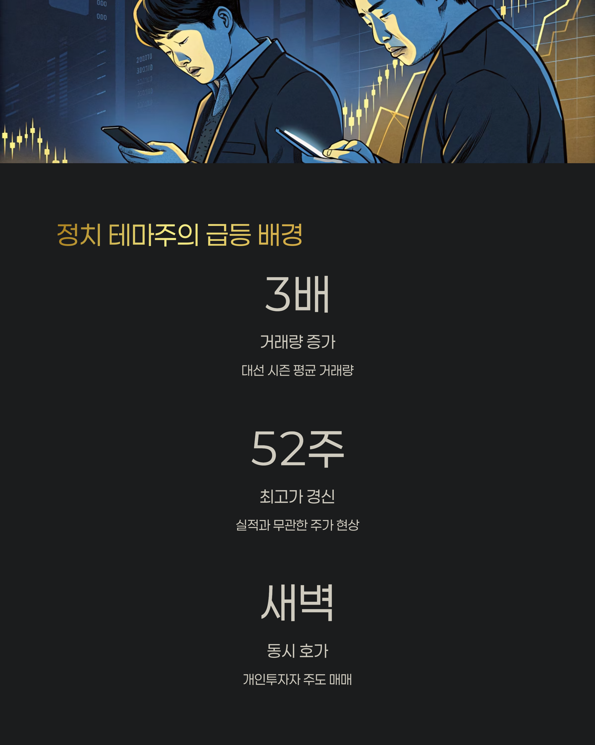 정치 테마주는 대부분 "확인되지 않은 정보"를 기반으로 움직입니다.
