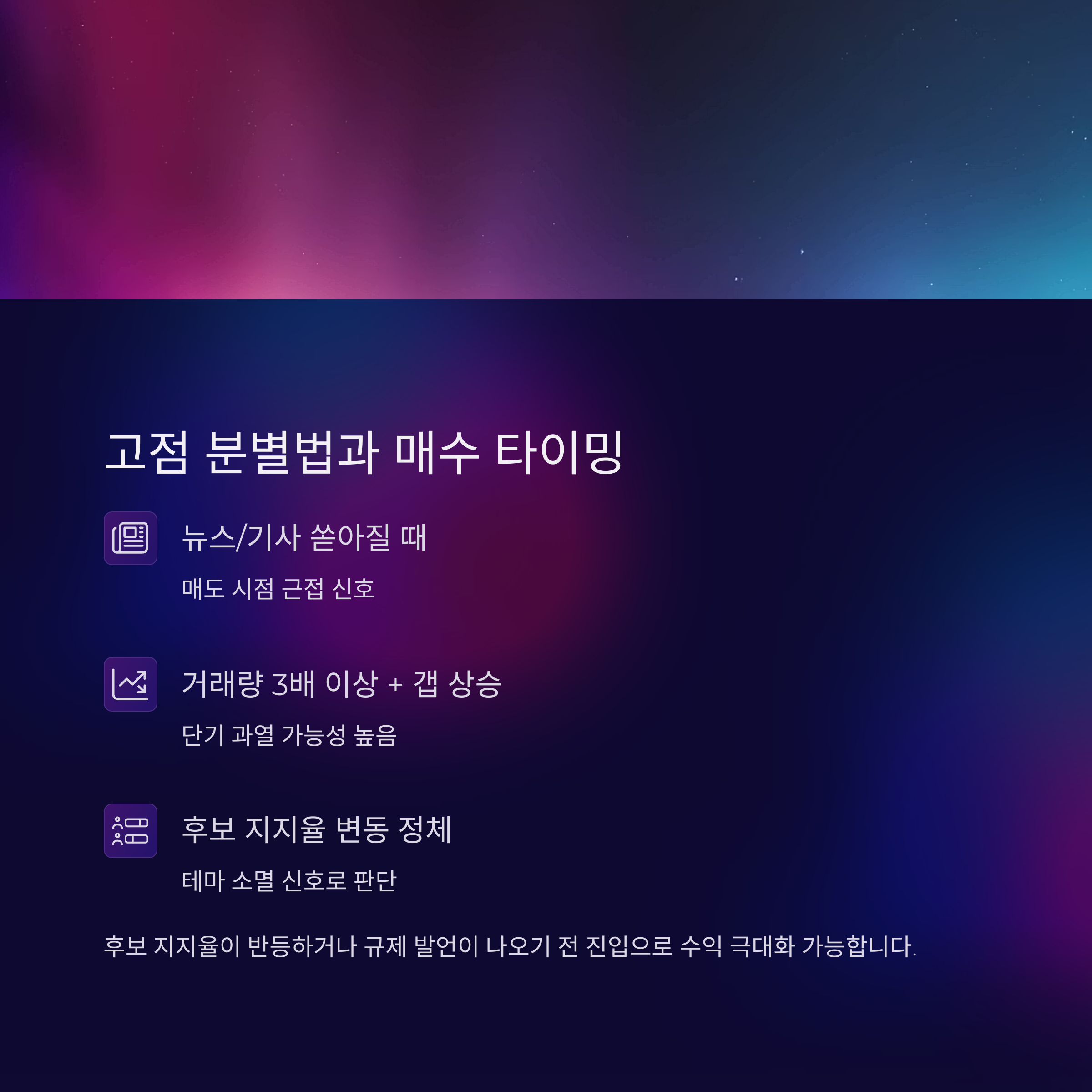 | 후보 지지율 반등기 | 테마군 초기 반응 | 매집 구간, 조용한 상승 |