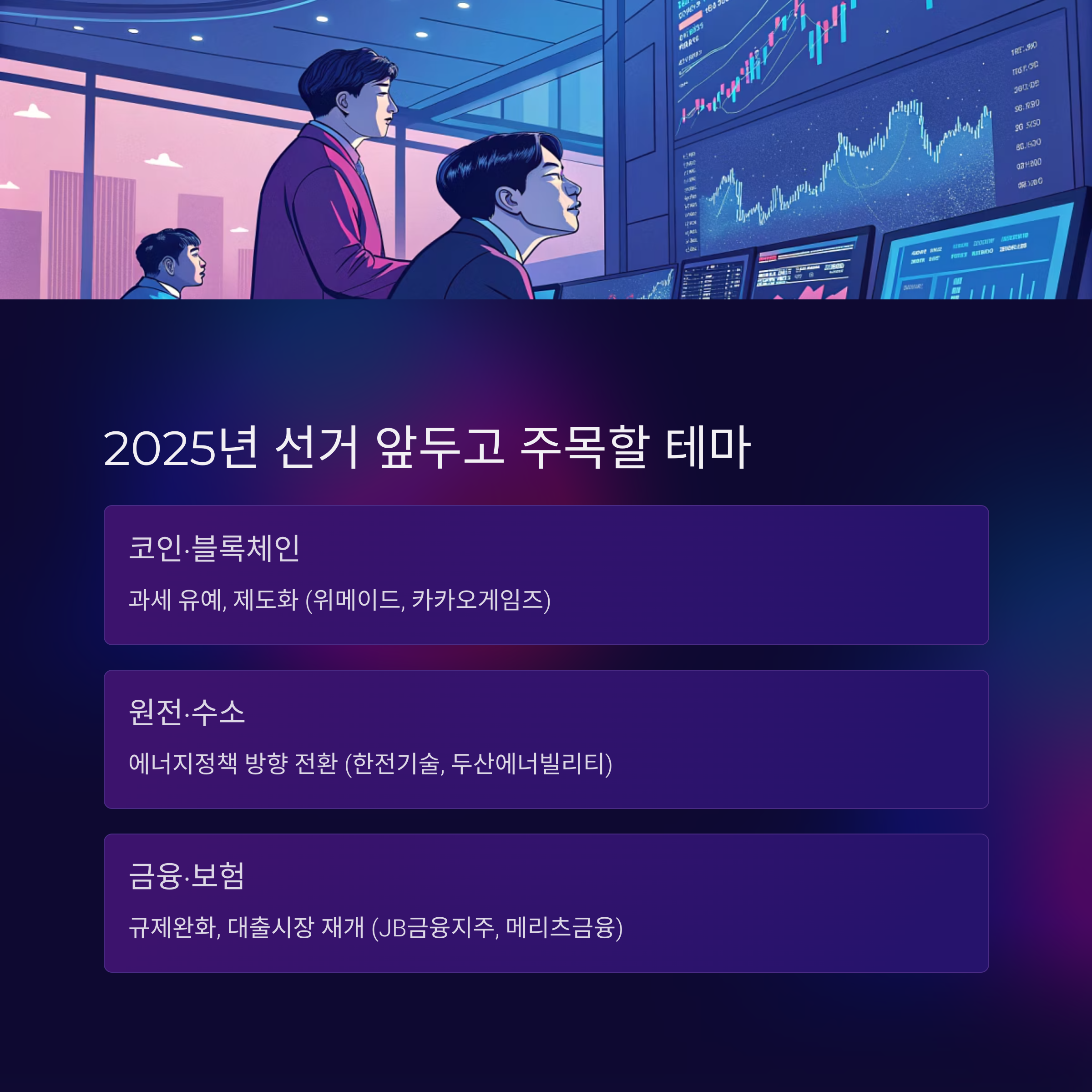 | 게임·코인 | 규제 완화 및 제도화 기대 | P2E, NFT, 거래소 관련주 |