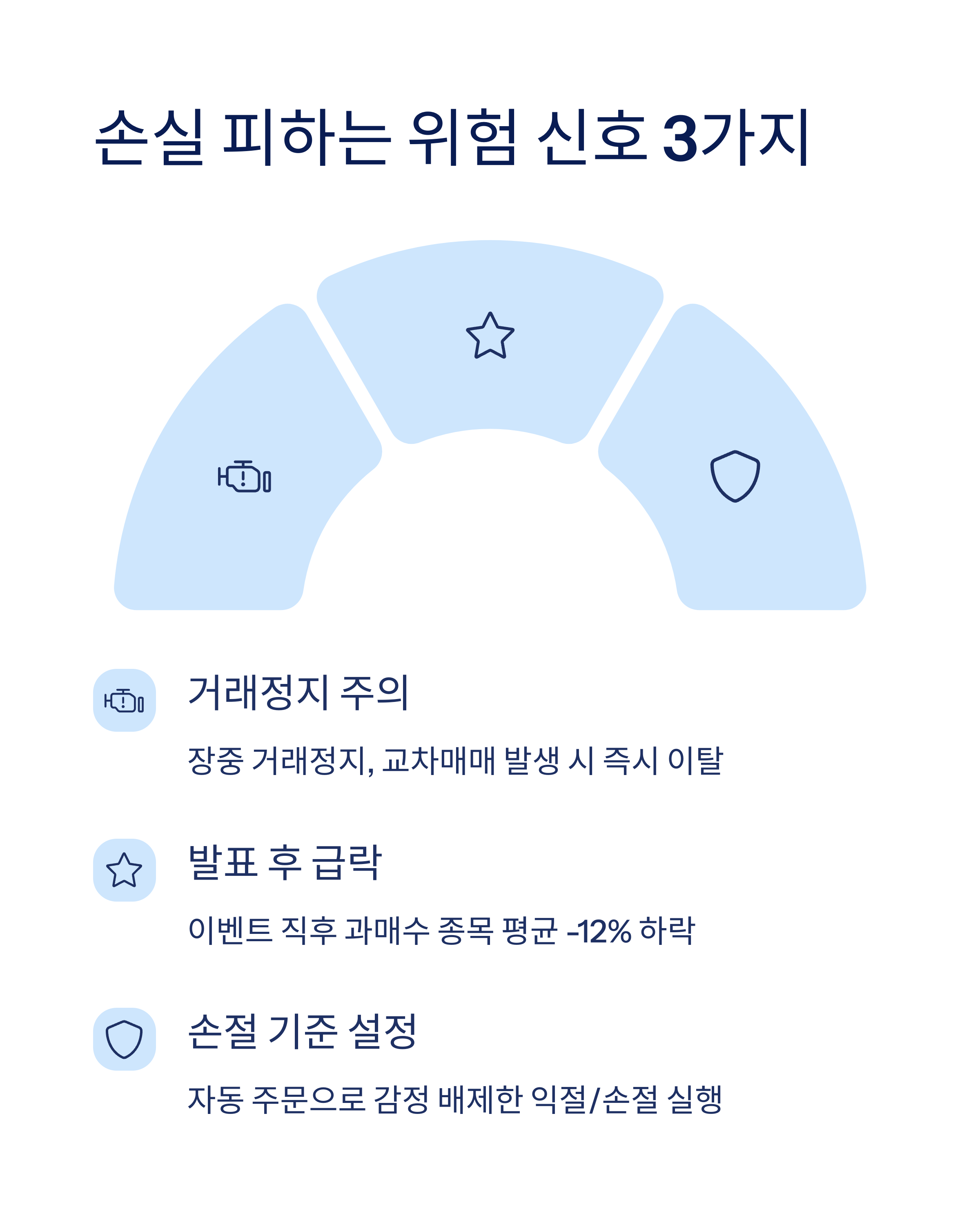 - 타이밍 분할: 진입은 빠르게, 청산은 분할로 안전하게