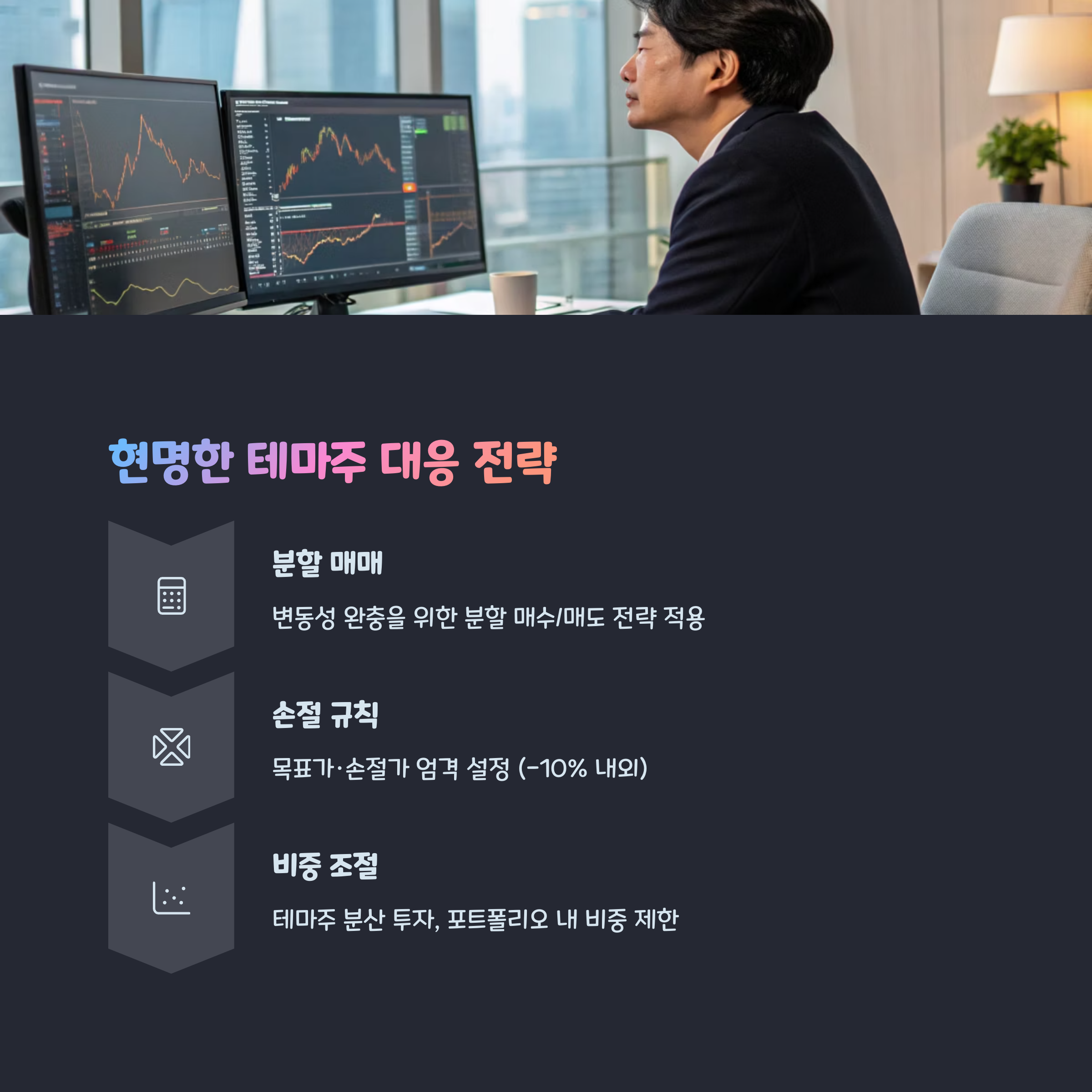 | 특정 정치인과 관련된 이슈 기업 급등 | 경험적 학습과 군중심리에 기반 | 리스크 관리, 분할 매수·매도 전략 필요 |