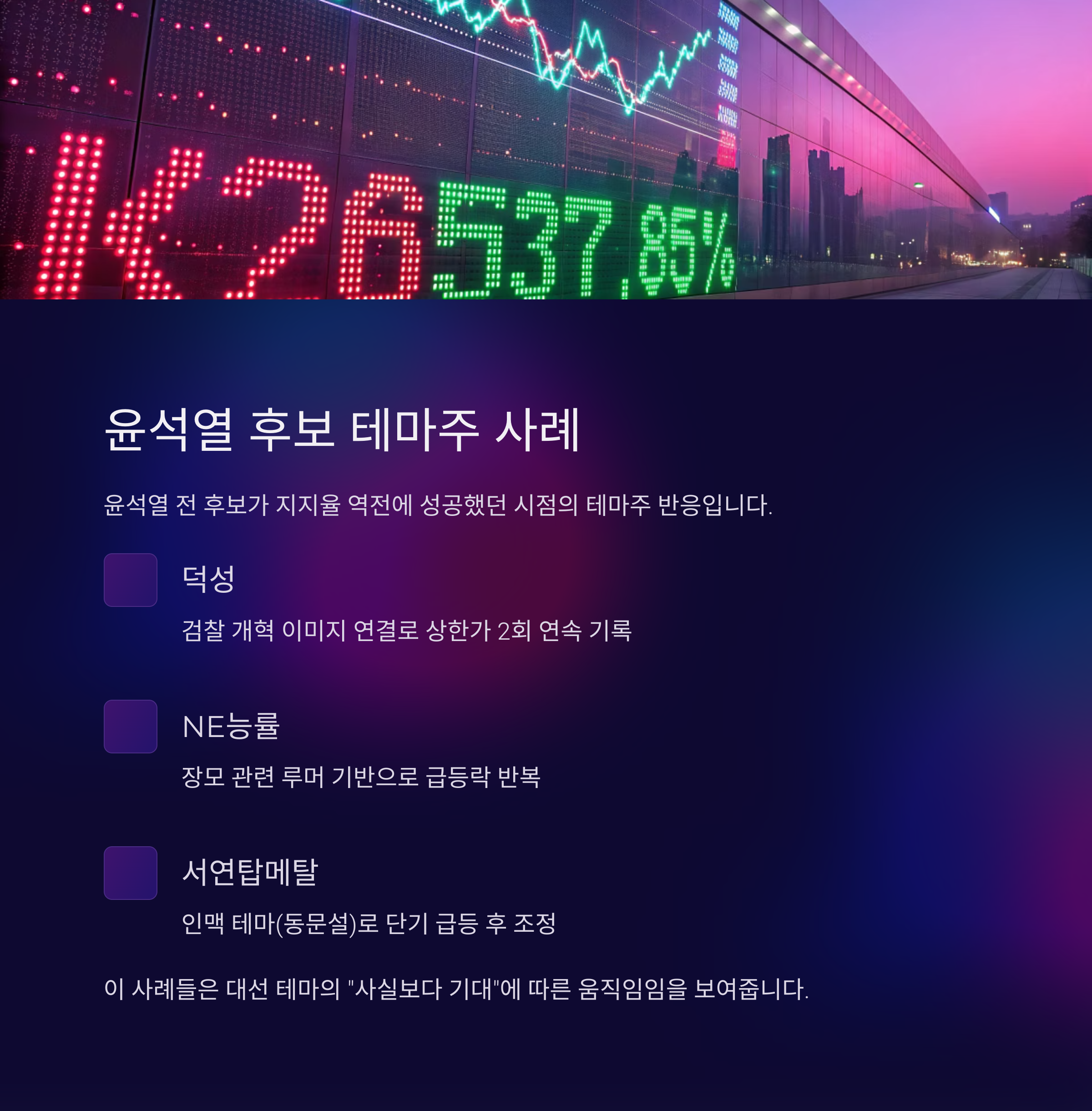 실제 사례 2: 윤석열 후보 테마주 (2022년 대선 당시)
