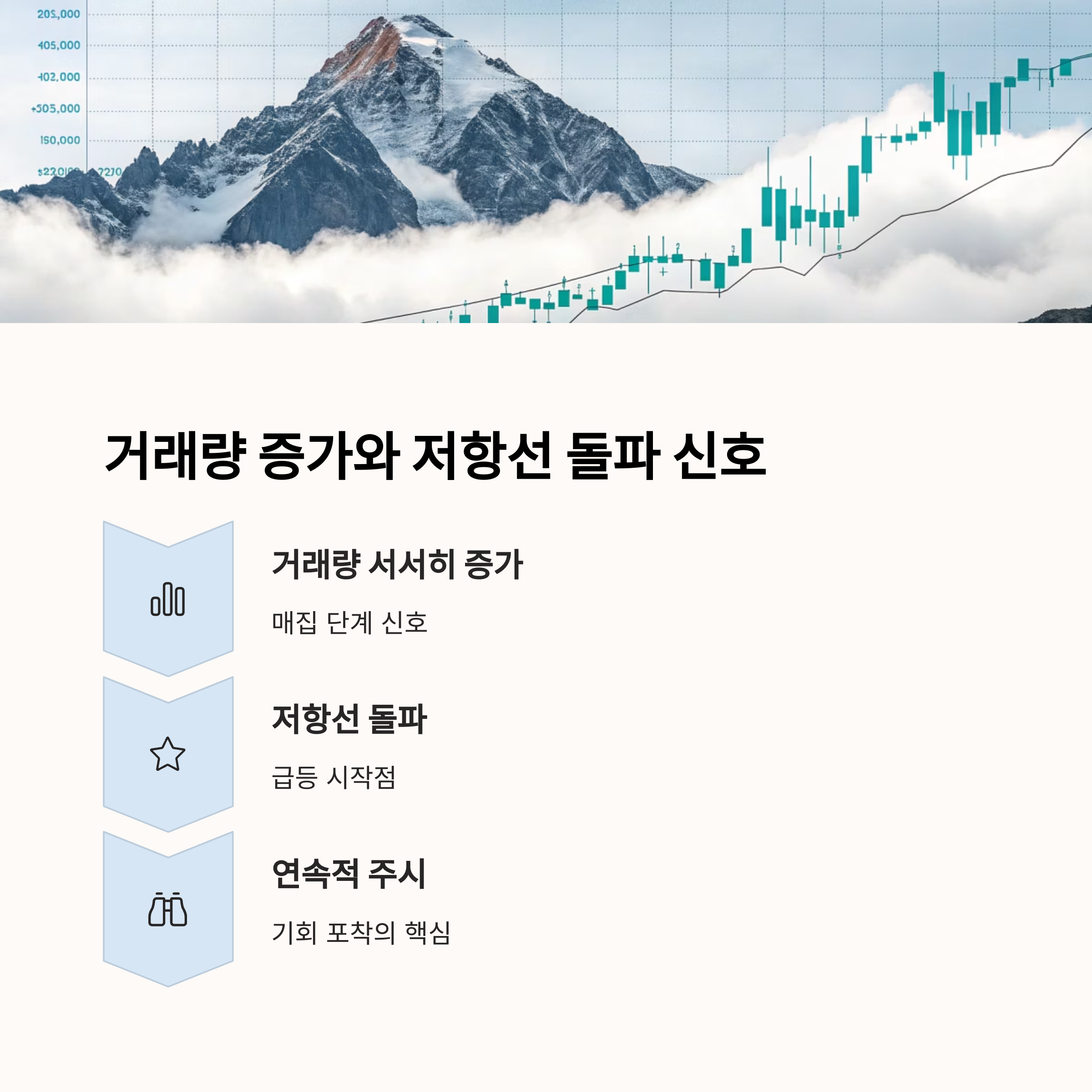 | 뉴스 없이도 거래량 증가 신호 주목 | 횡보구간 상단 돌파 시 본격 상승 시작 | 공약·정책·정부 발표 등 공식 정보 중요 |