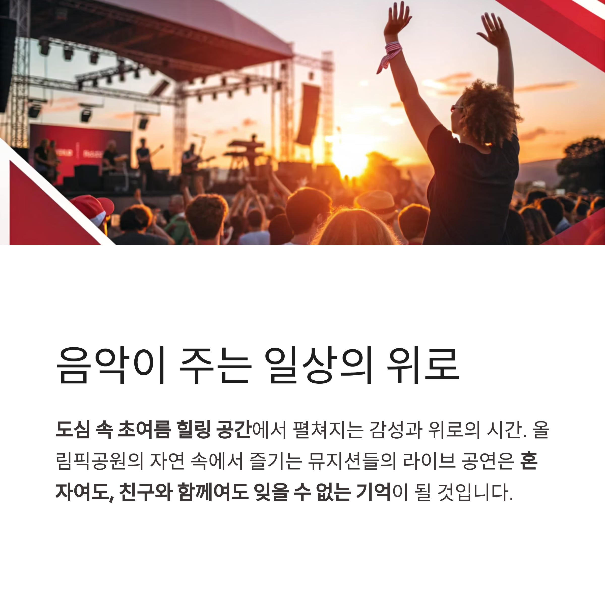 올림픽공원의 자연 속에서 즐기는 뮤지션들의 라이브 공연은