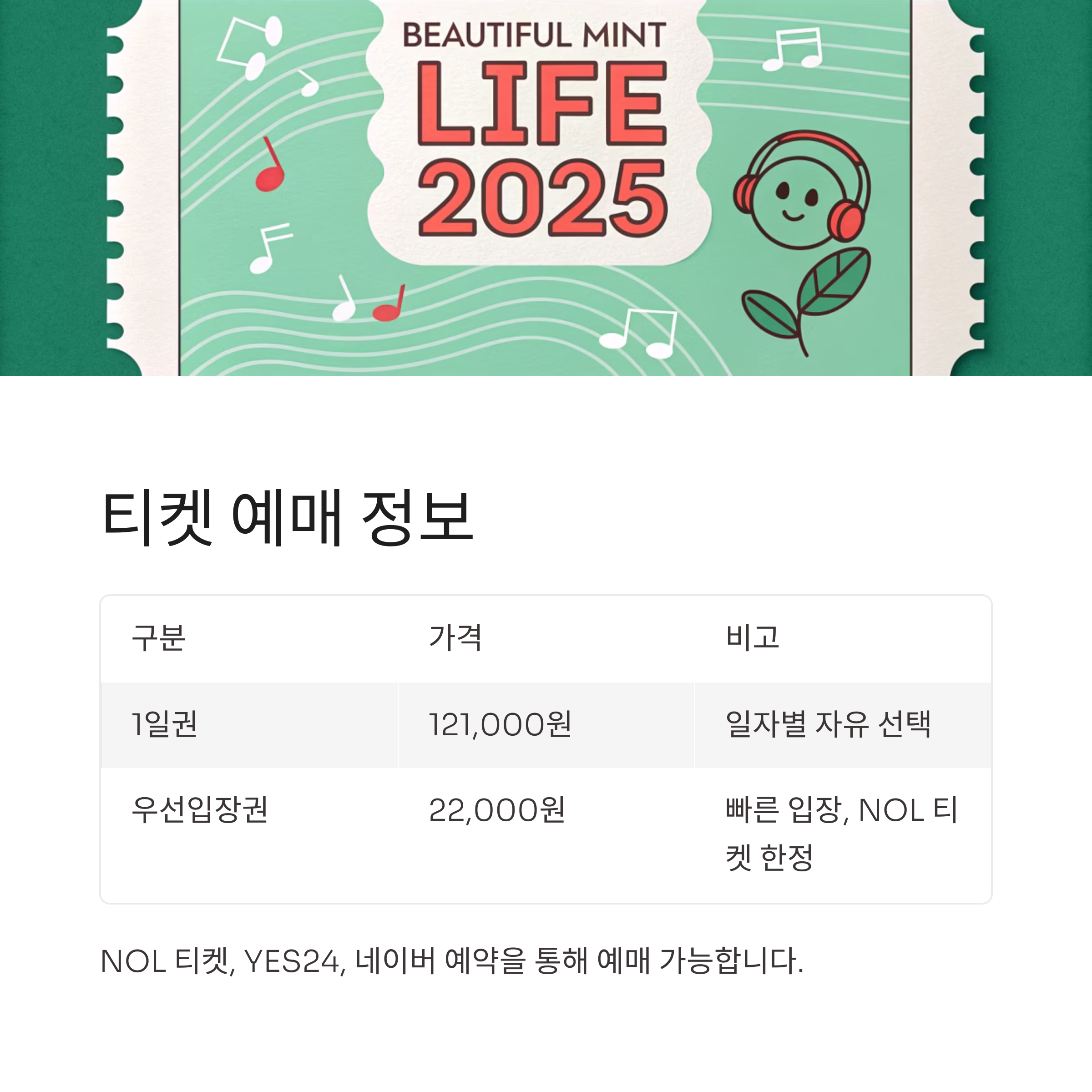 타임테이블, 입장 동선, 무대별 특징, 주차·픽업 정보 등이 순차적으로 공개될 예정입니다.