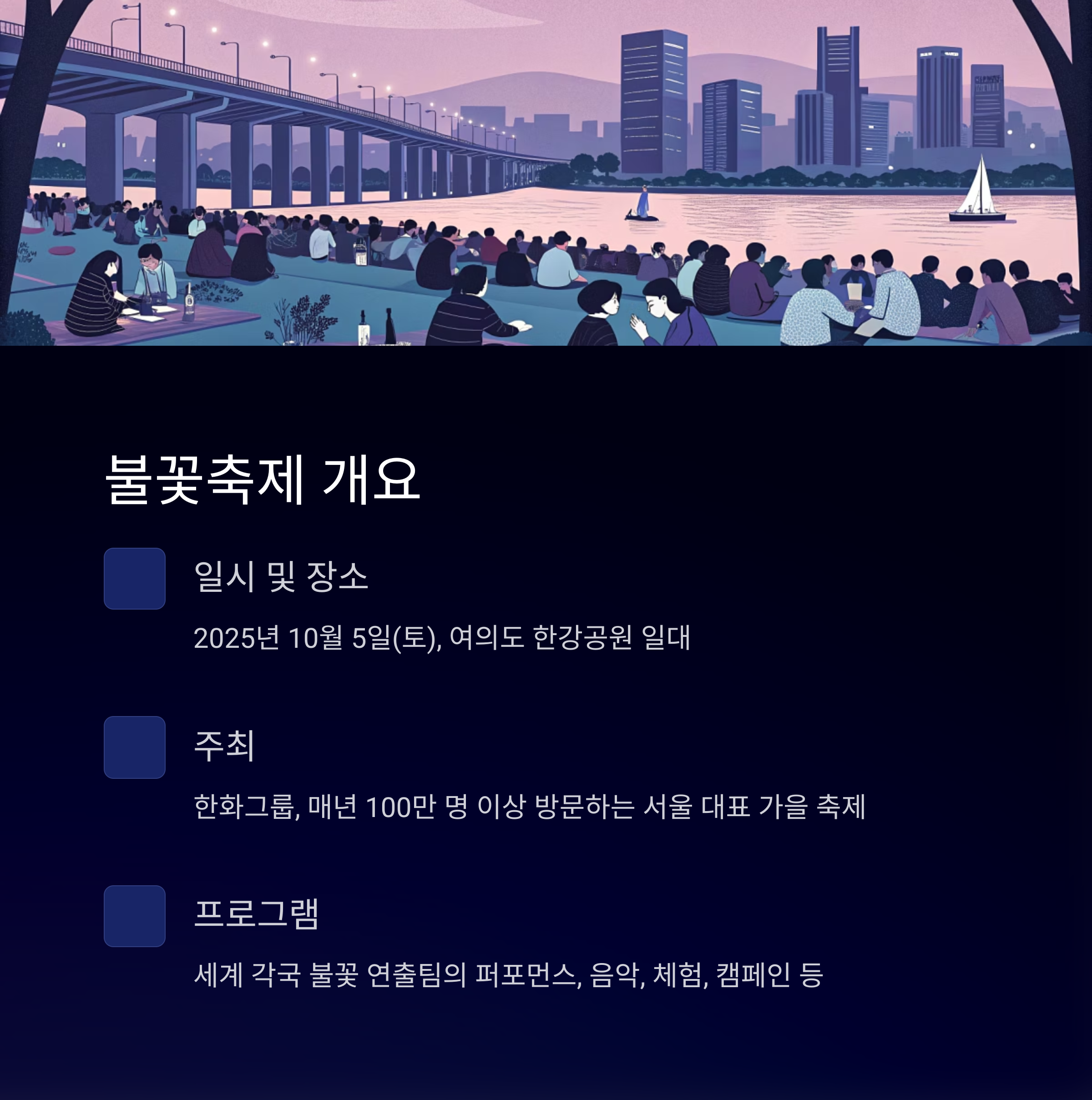 2025년 서울 불꽃축제는 10월 5일 토요일,
