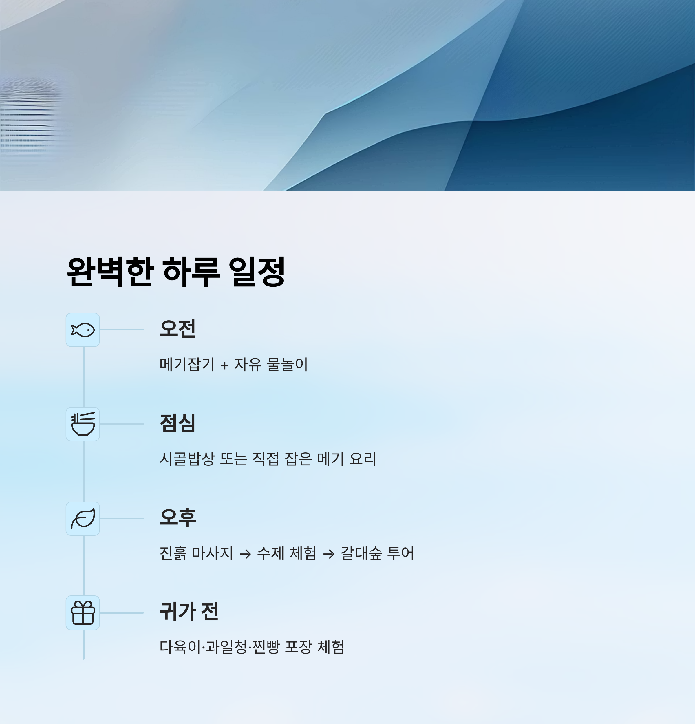 - 귀가 전: 다육이·과일청·찐빵 포장 체험으로 마무리