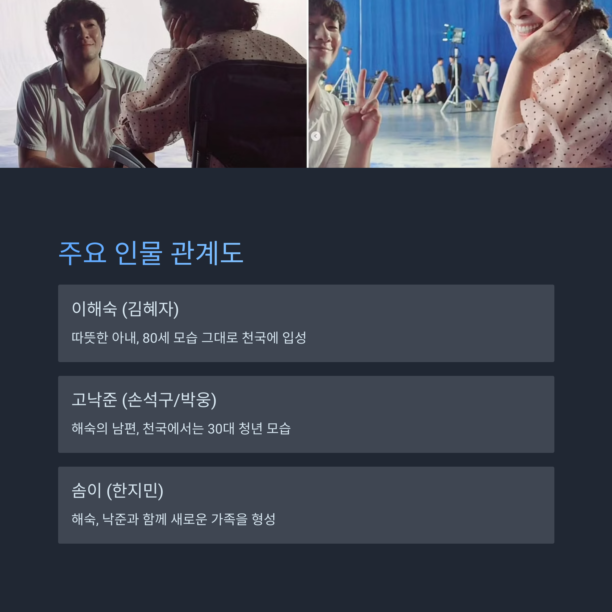 | 고낙준 | 손석구 / 박웅 | 젊은 남편 / 생전 노년 모습 | 해숙의 남편 |